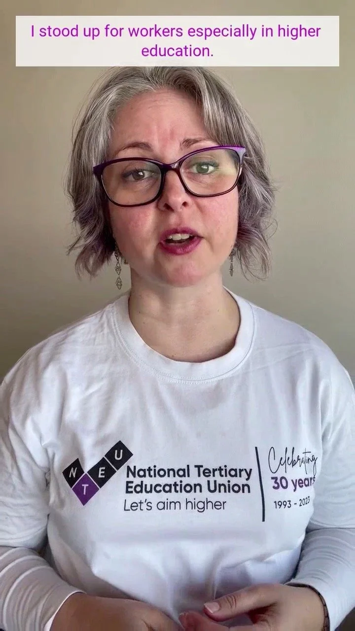 When I was elected as Assistant Secretary (Professional Staff) in 2022, I channeled that passion into the fight for better working conditions in tertiary education. As a strong advocate for fair treatment, I've worked hard to improve conditions and support our members across the sector in Victoria.
